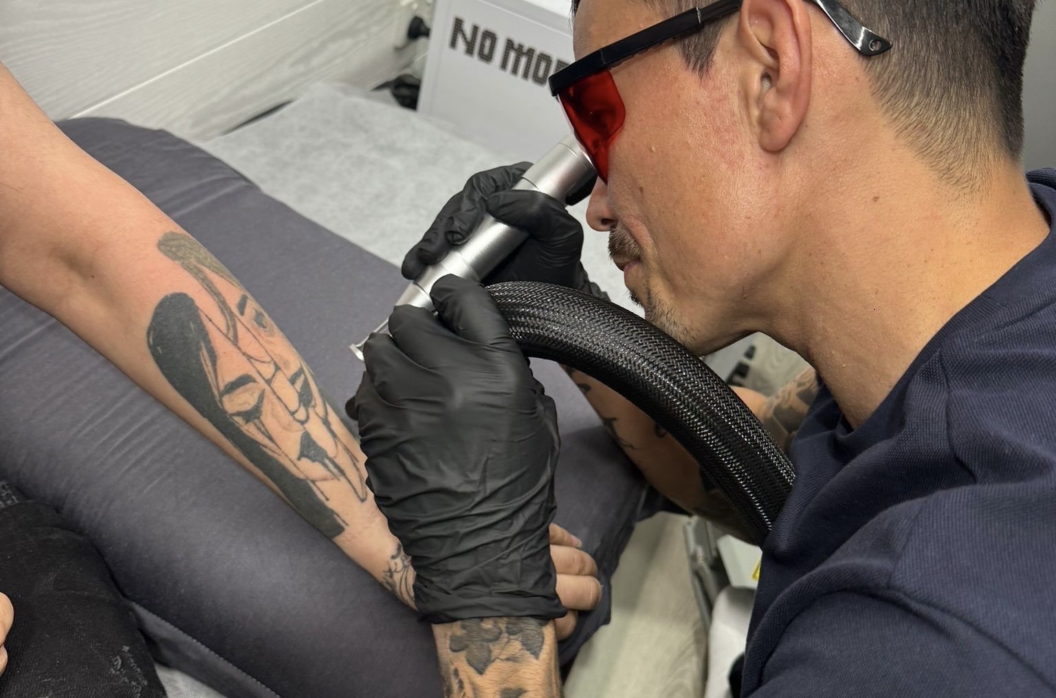 At No More Ink, we've made tattoo removal simpler and more accessible. Our custom-built van is a fully equipped laser studio that comes to you, offering a private and comfortable space for your treatment. No clinics or waiting rooms, just a modern, seamless experience that fits your schedule.